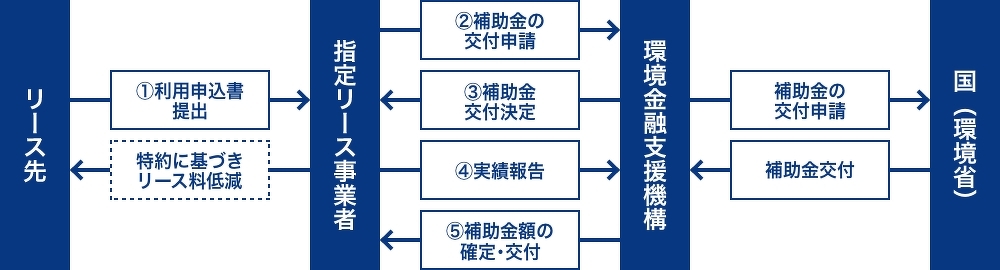 - 補助金申請は環境省から指定を受けた指定リース事業者が行います。そのため、リース先では補助金申請の手続きは必要ありません。